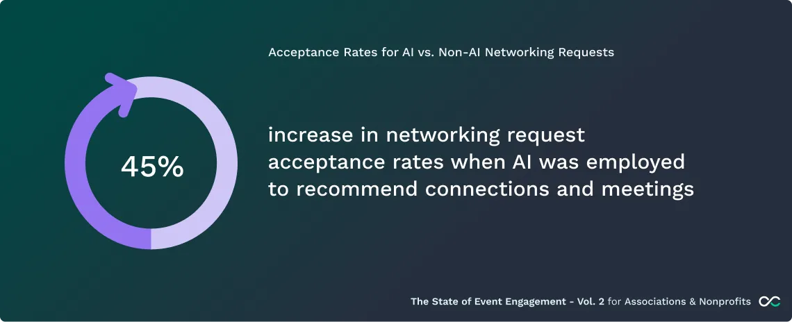 Association and nonprofit events that leveraged Swapcard’s AI-powered networking saw connection acceptance rates increase by 45%, with Tier 1 association and nonprofit events seeing nearly double the connection acceptance rate.